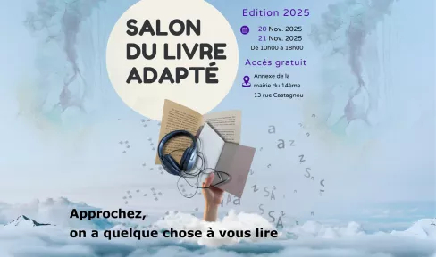 Salon du livre adapté à la mairie du 14e. « Ce salon met en lumière les multiples formes d’adaptation qui rendent la littérature accessible aux personnes en situation de handicap. Une belle occasion de découvrir des ouvrages pensés pour tous les lecteurs ! À découvrir sur place : Livres en braille, Livres audio, Ouvrages en grands caractères, Contenus en Facile à Lire et à Comprendre (FALC) proposés par des éditeurs engagés pour une accessibilité universelle. » Lieu : Annexe de la mairie du 14e, 13 rue Castagnou à Paris (14e). Programme des lectures et dédicaces téléchargeable. Entrée libre et gratuite.
